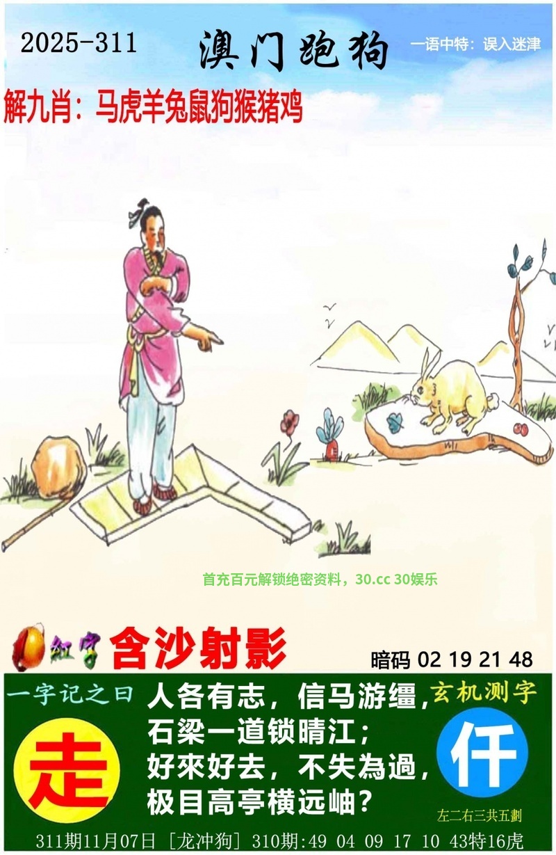跑狗七肖:鸡猴马虎羊兔